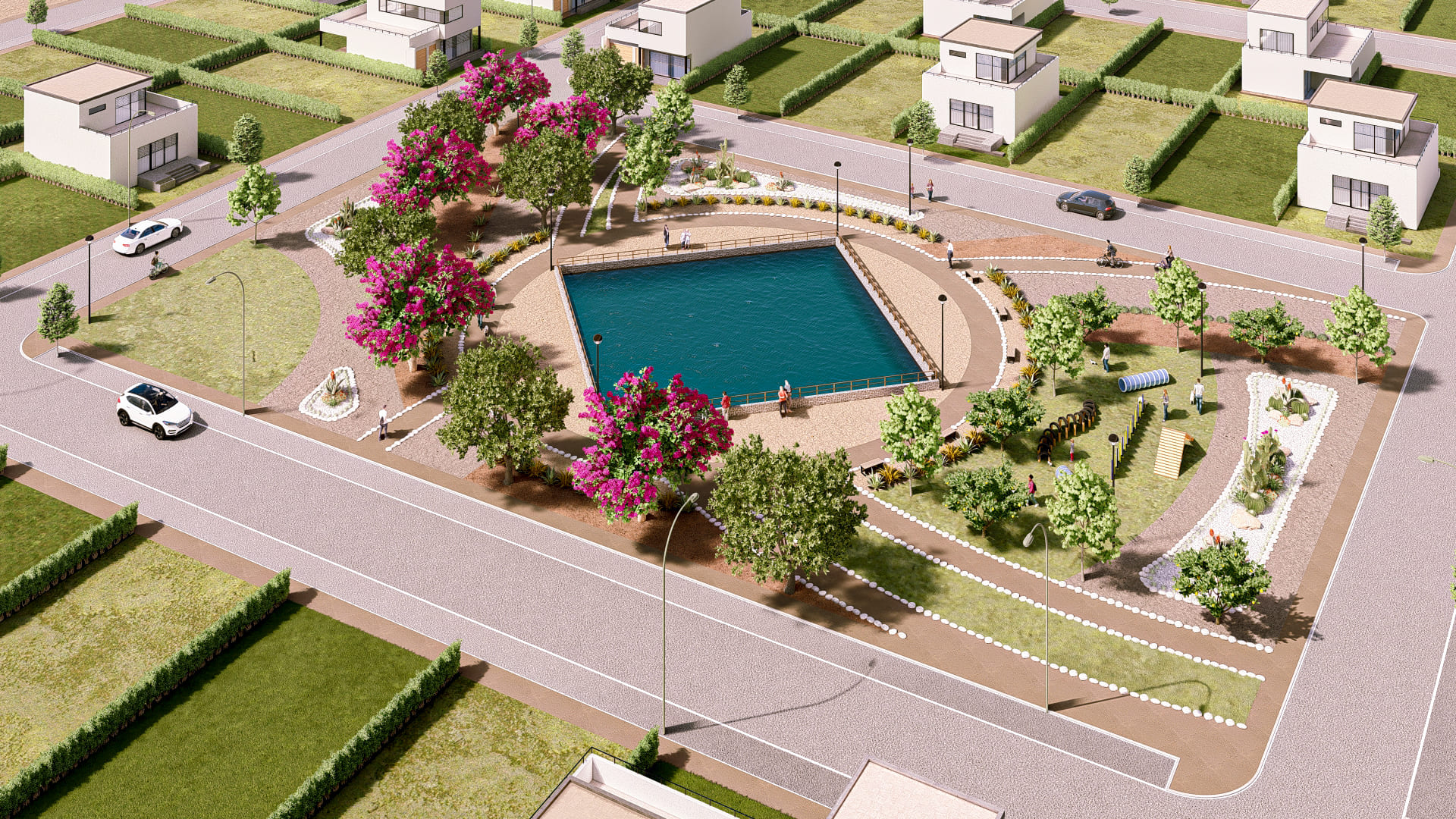 Uno de los últimos grandes proyectos es Valle de Plata en —-. Nuestro cliente necesitaba mostrar este desarrollo de uso mixto. Las representaciones necesitaban tener vida y estar pobladas con mucha gente multicultural. Uno de los desafíos que tuvimos fue exhibir también el área club en la parte trasera, que estaba en un estado de gran desarrollo debido a que se convirtió de un campo de fútbol, ​​por lo que también tuvimos que recrearlo.